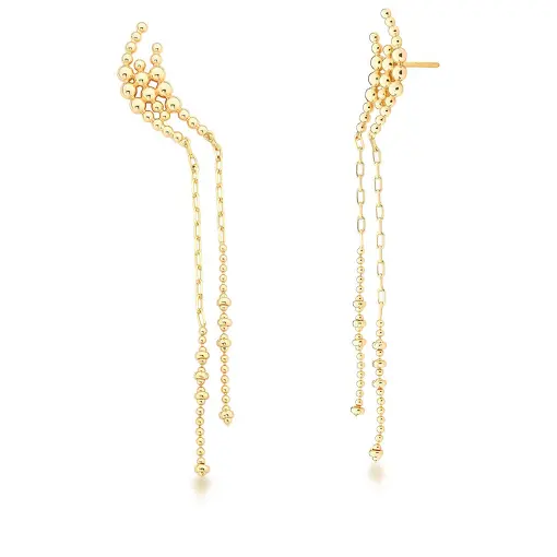 BRINCO EAR CUFF COM ESFERAS LISAS E PÊNDULO