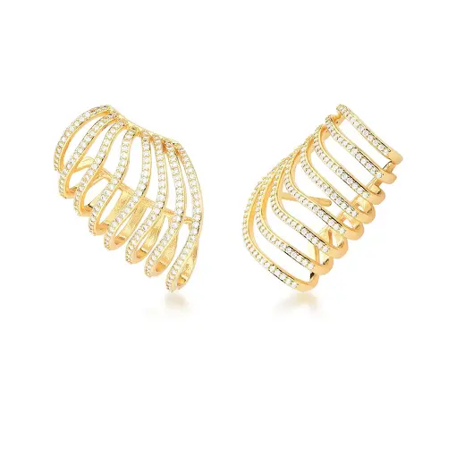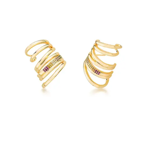 BRINCO EAR CUFF SETE VOLTAS E ZIRCÔNIAS BANHADO A OURO
