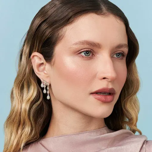 BRINCO EAR CUFF EM PÊNDULO COM CRISTAIS PRATA RODINADA