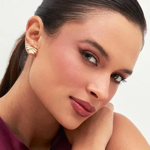 BRINCO EAR CUFF COM QUADRADOS TEXTURIZADOS BANHADO A OURO