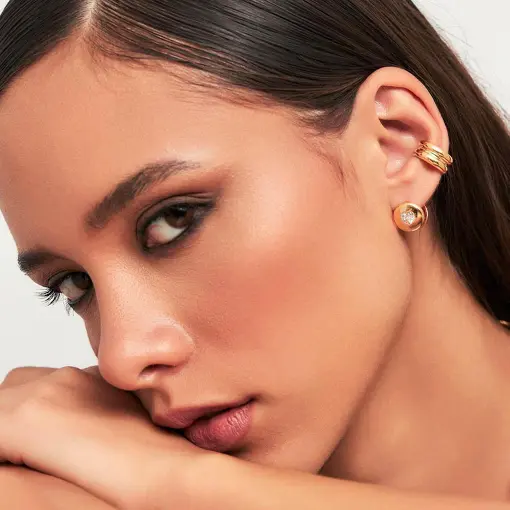 PIERCING DE ORELHA CURVO CRAVEJADO DE ZIRCÔNIAS BANHADO A OURO