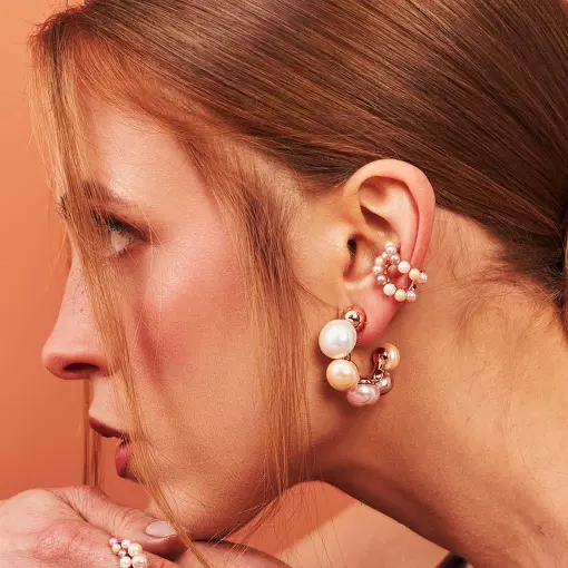 PIERCING DE ORELHA DUAS FILEIRAS COM PÉROLAS BANHADO A OURO