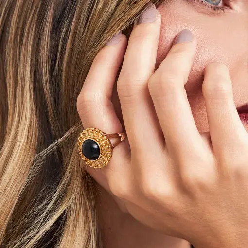 ANEL ABAULADO TRANÇADO LISO E CRAVEJADO BANHADO A OURO