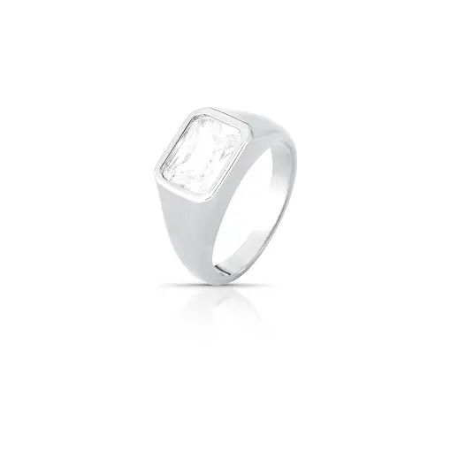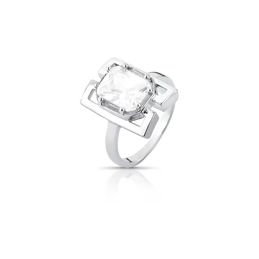 ANEL GEOMÉTRICO COM CRISTAL RETANGULAR BANHADO A RÓDIO