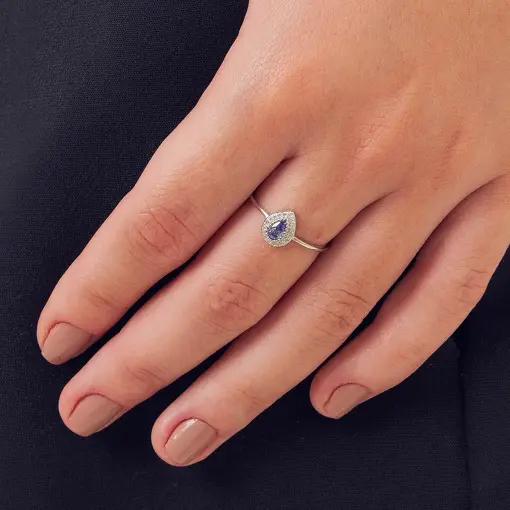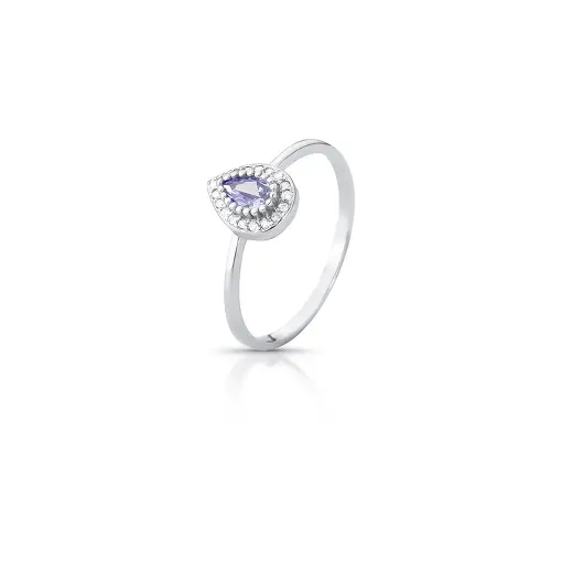 ANEL COM CRISTAL DE GOTA E ZIRCÔNIA EM PRATA RODINADA
