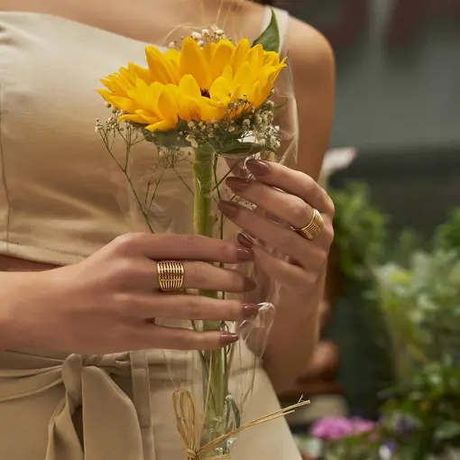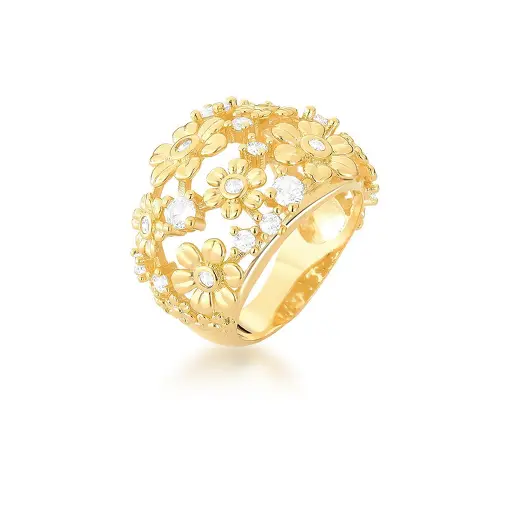 ANEL DE FLORES LISAS E ZIRCÔNIAS BANHADO A OURO