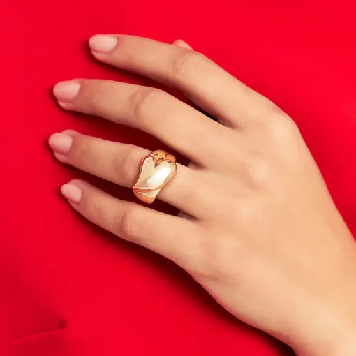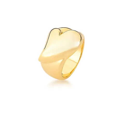 ANEL ABAULADO DE CORAÇÃO CURVO BANHADO A OURO