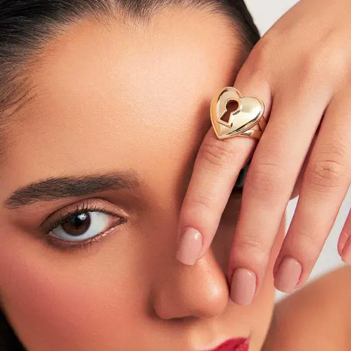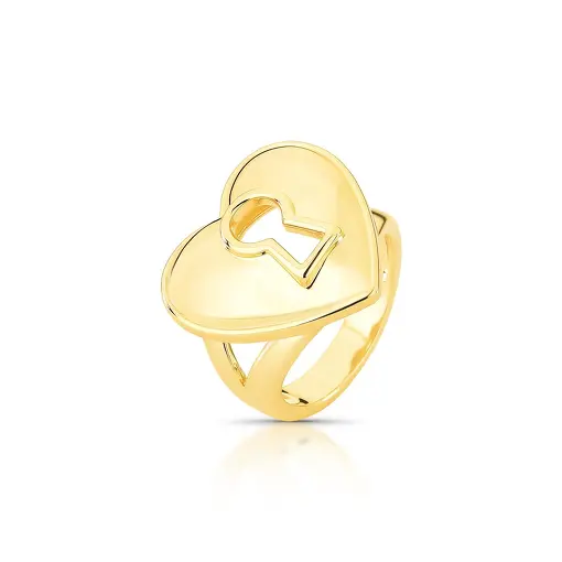ANEL DE CORAÇÃO VAZADO E LISO BANHADO A OURO
