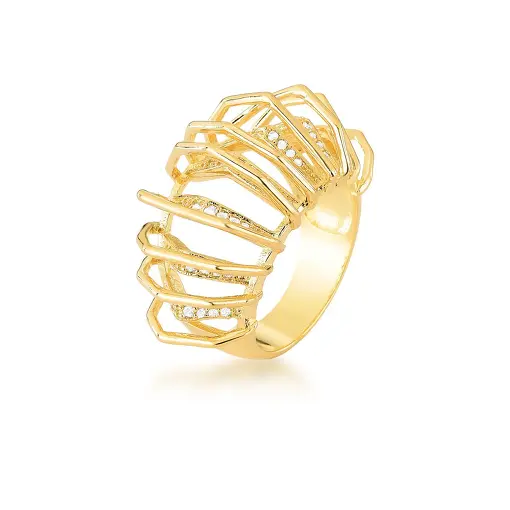 ANEL VAZADO E CRAVEJADO COM ZIRCÔNIA