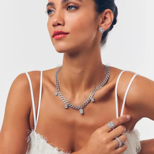 ANEL QUADRADO E REDONDO COM ELOS GROUMET EM PRATA RODINADA