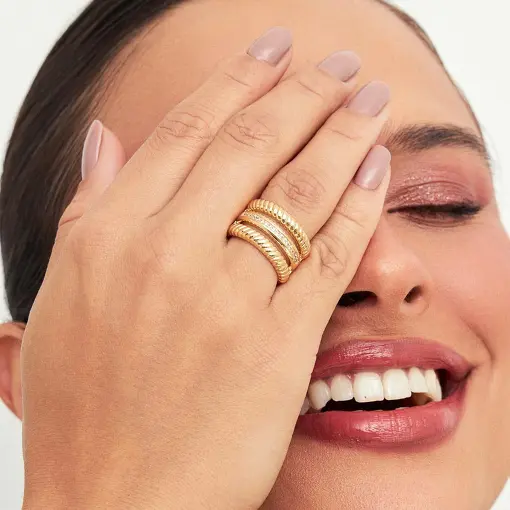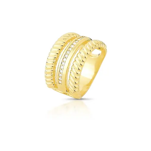 ANEL TEXTURIZADO COM ZIRCÔNIA BANHADO A OURO