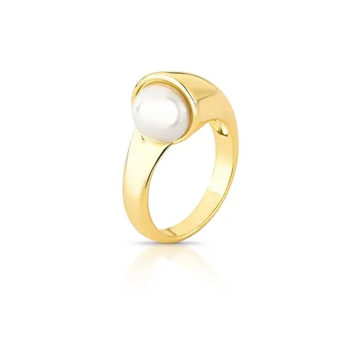 ANEL COM QUADRADOS LISOS E PÉROLA SHELL BANHADO A OURO