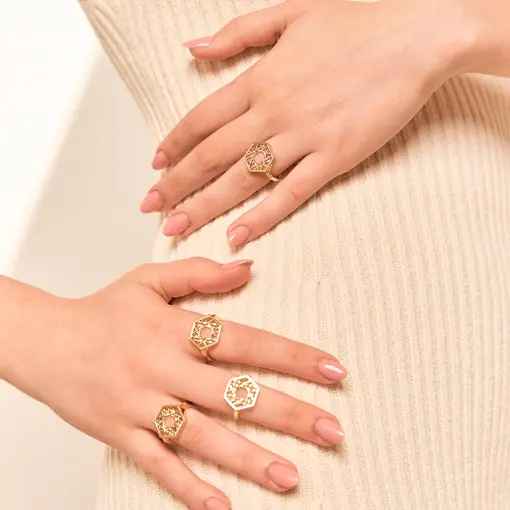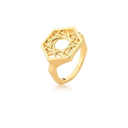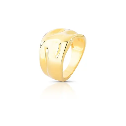 ANEL ABAULADO VAZADO LISO E CRAVEJADO BANHADO A OURO
