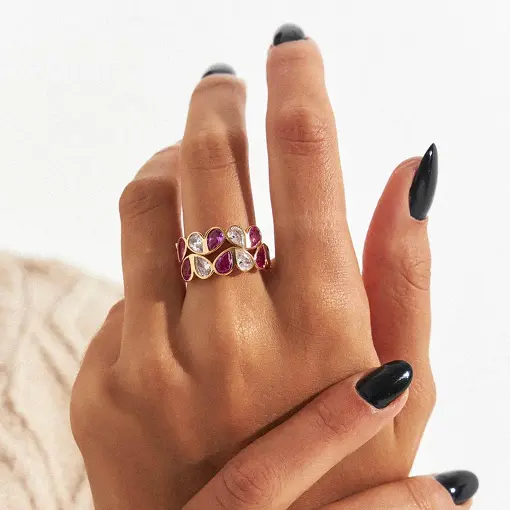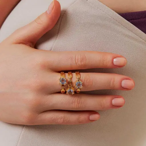 ANEL VAZADO COM CRISTAIS QUADRADOS