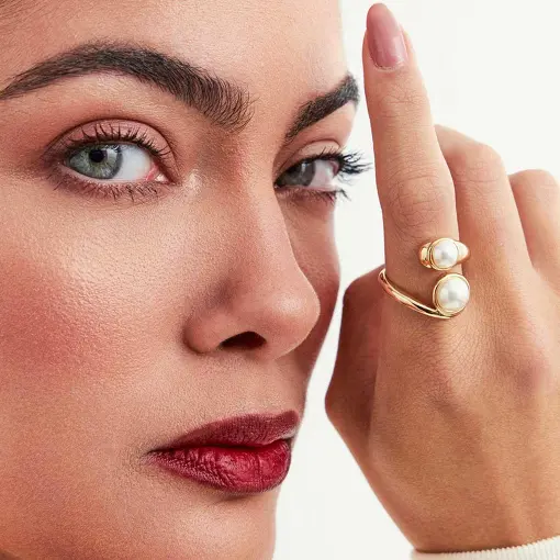 ANEL REGULÁVEL CURVO COM DUAS PÉROLAS SHELL