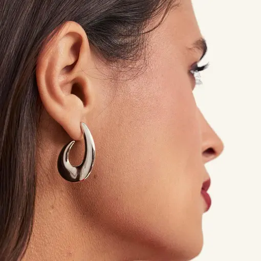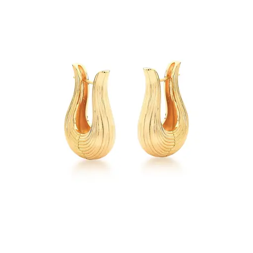 ARGOLA CURVA TEXTURIZADA LISA BANHADA A OURO