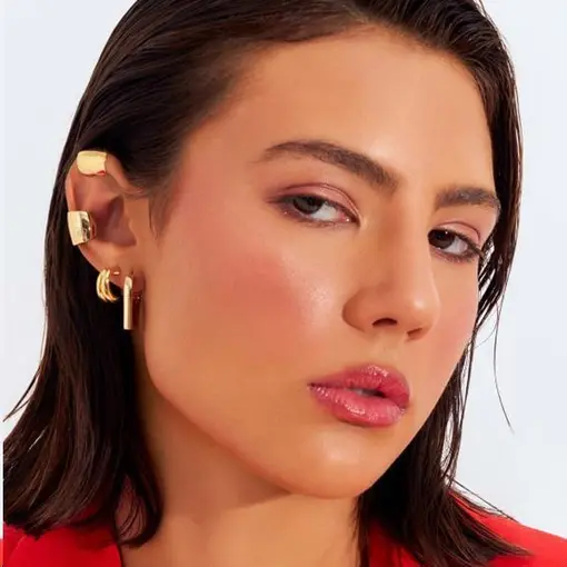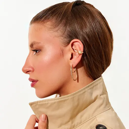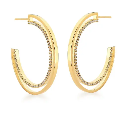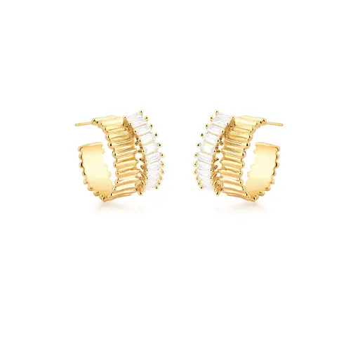 MEIA ARGOLA EM "X" E ZIRCÔNIAS BRANCAS BANHADA A OURO