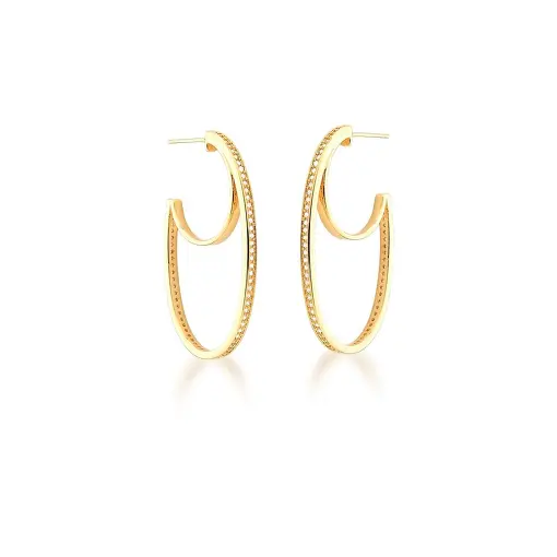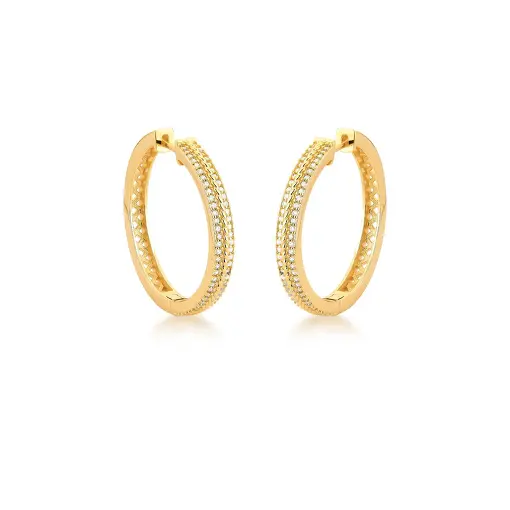 MEIA ARGOLA DUAS FILEIRAS COM ZIRCÔNIAS BRANCAS BANHADA A OURO