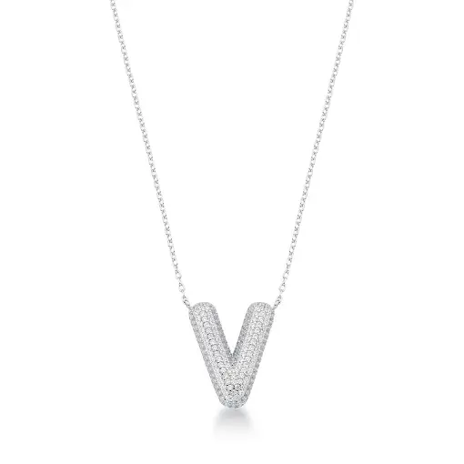 COLAR COM PINGENTE DE LETRA "V" CRAVEJADO PRATA RODINADA