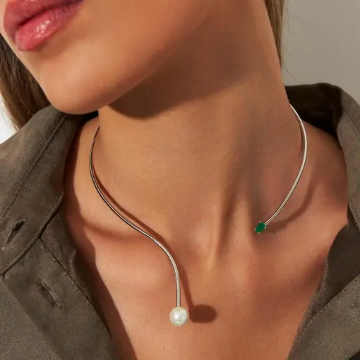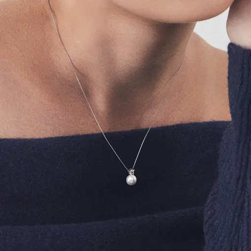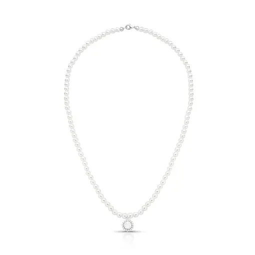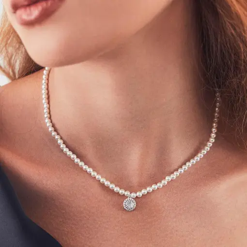 COLAR COM PINGENTE DE CRISTAL REDONDO E PÉROLA SHELL