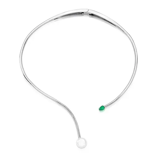 COLAR COM PINGENTE CURVO TRANÇADO E ZIRCÔNIAS