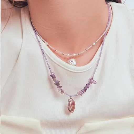 COLAR COM CRISTAL REDONDO E PÉROLA SHELL