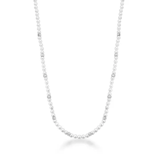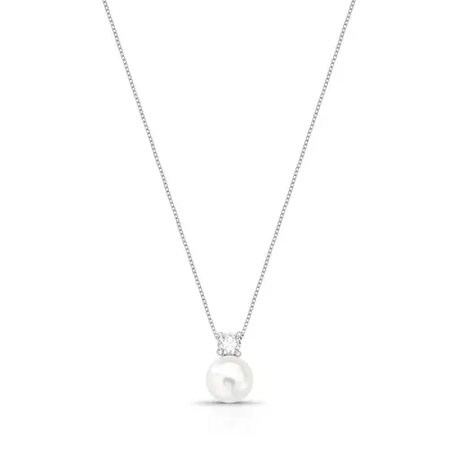 COLAR COM PINGENTE PÉROLA ÁGUA DOCE E CRISTAIS PRATA RODINADA