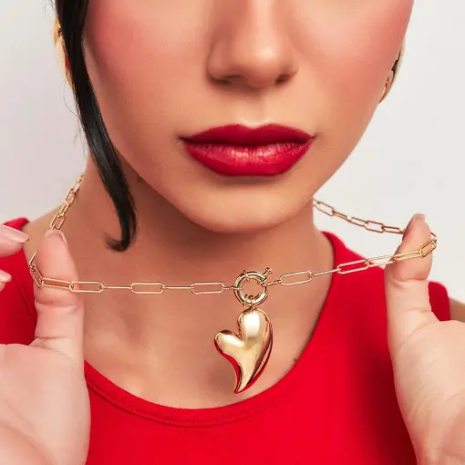 COLAR COM PINGENTE DE CORAÇÃO CURVO BANHADO A OURO