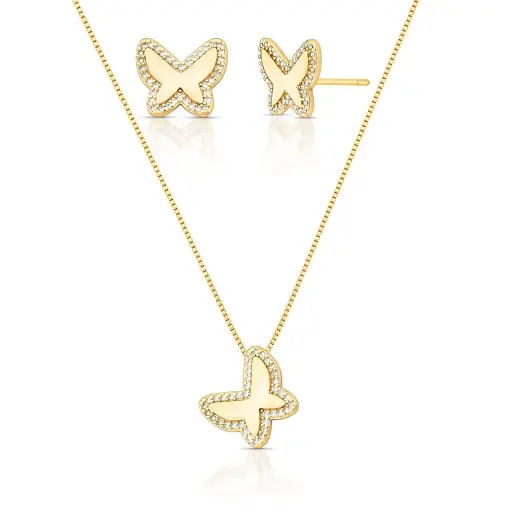 CONJUNTO BRINCO E COLAR DE BORBOLETA COM ZIRCÔNIAS