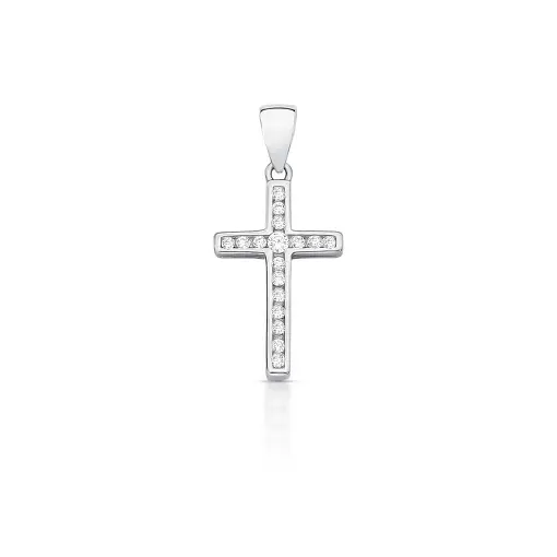PINGENTE DE CRUZ COM ZIRCÔNIAS PRATA RODINADA