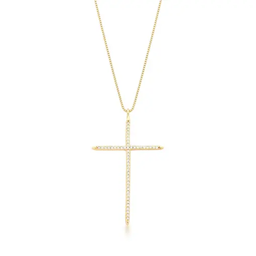 COLAR COM PINGENTE DE CRUZ E CRISTAIS