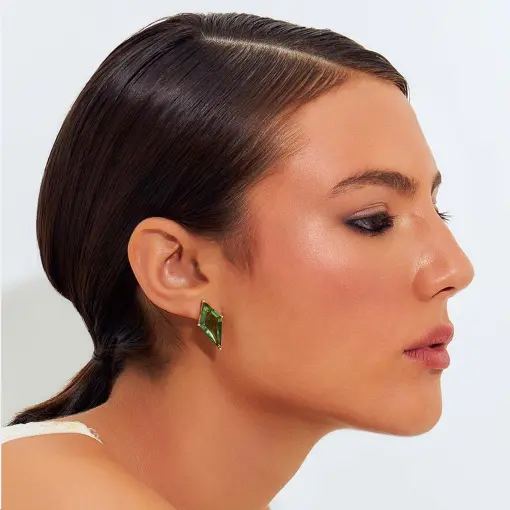 BRINCO LOSANGO COM PEDRA DE RUTILO RECONSTITUÍDA