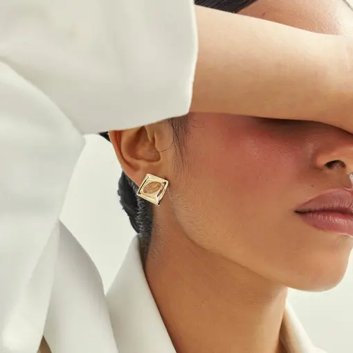 BRINCO COM CRISTAL GEOMÉTRICO VAZADO BANHADO A OURO