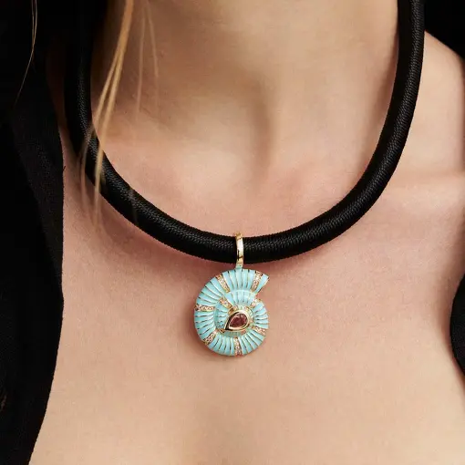 PINGENTE RETANGULAR COM FECHO E PEDRA LÁPIS LAZULI RECONSTITUÍDA