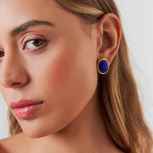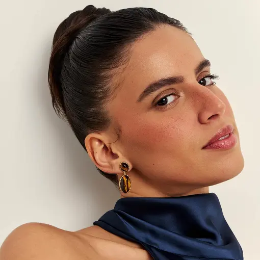BRINCO OVAL NAVETE EM PÊNDULO COM PEDRA RECONSTITUÍDA