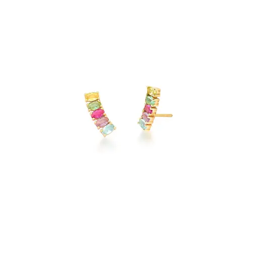 BRINCO EAR CUFF COM CRISTAIS OVAIS COLORIDOS BANHADO A OURO