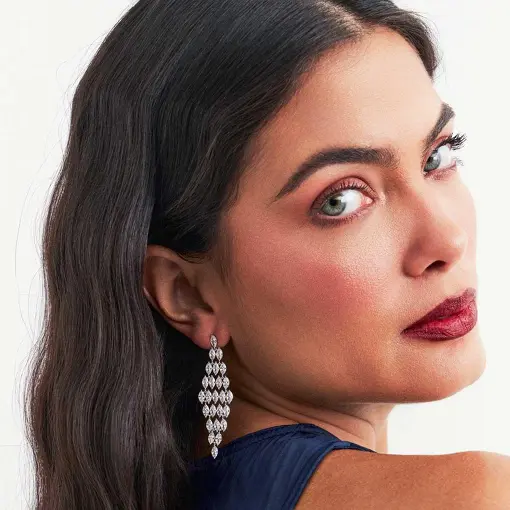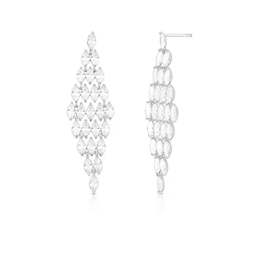 BRINCO PÊNDULO LOSANGO VAZADO COM CRISTAIS E ZIRCÔNIAS