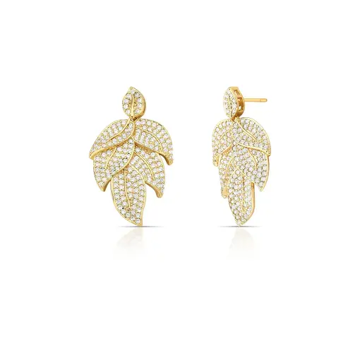BRINCO PÊNDULO DE FOLHA CRAVEJADO BANHADO A OURO