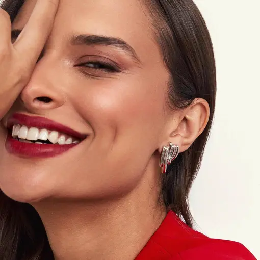 BRINCO CURVO DE ASA LISO E CRAVEJADO DE ZIRCÔNIAS BANHADO A OURO