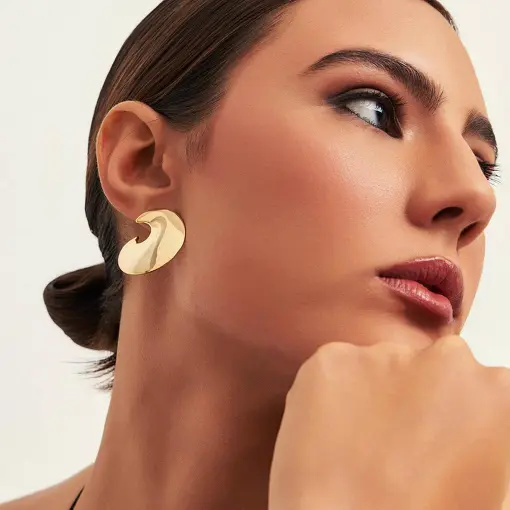 BRINCO OVAL TEXTURIZADO BANHADO A OURO