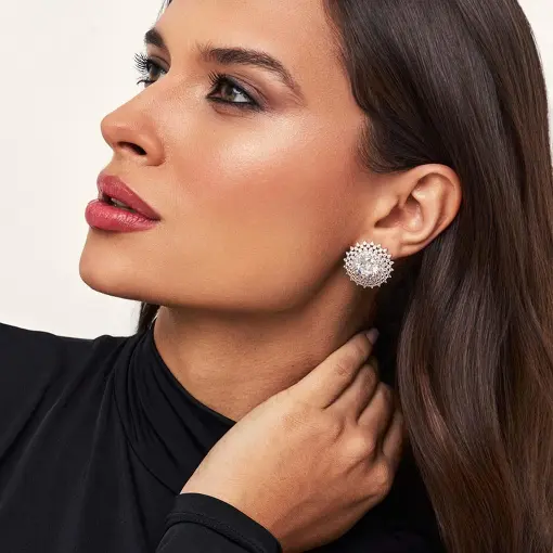 BRINCO DE FLOR CRAVEJADO COM CRISTAL REDONDO
