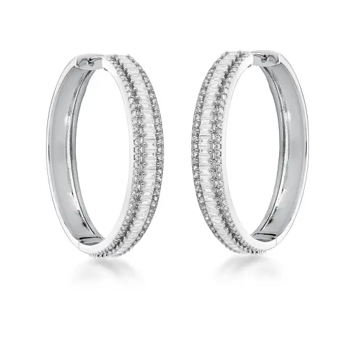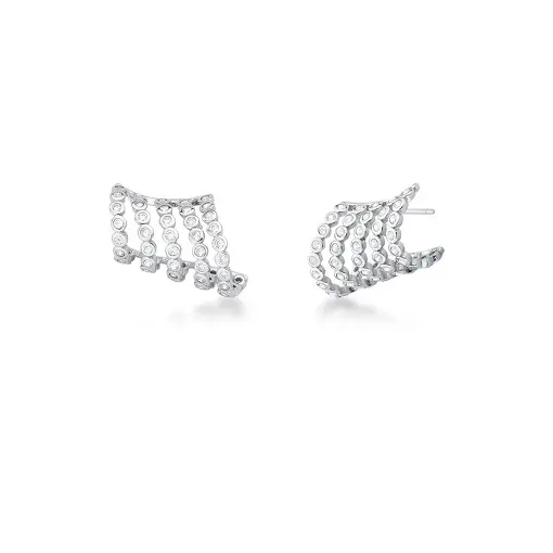 ARGOLA QUATRO FILEIRAS COM ZIRCÔNIAS BRANCAS BANHADA A RÓDIO