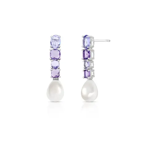 BRINCO PÊNDULO COM CRISTAIS E PÉROLA SHELL