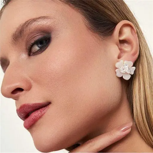 BRINCO DE FLOR COM CRISTAIS EM MADREPÉROLA