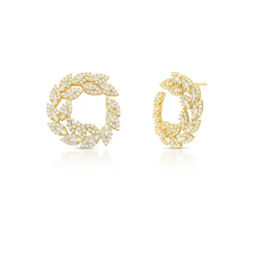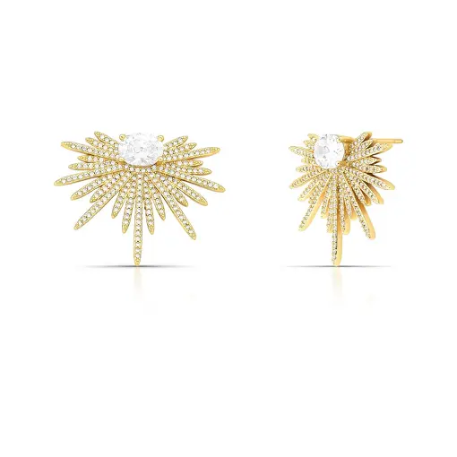 BRINCO DE FLOR VAZADO COM CRISTAIS DE GOTA E OVAL