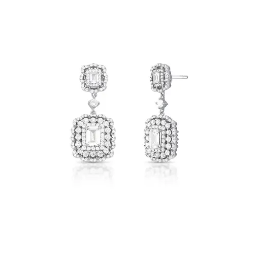 BRINCO PÊNDULO COM TRIÂNGULOS CRISTAIS E ZIRCÔNIA