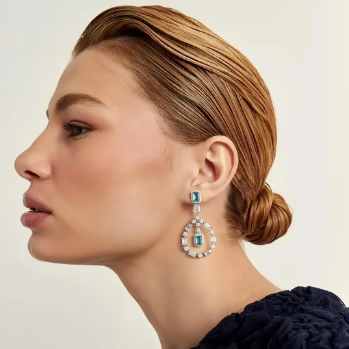 BRINCO EAR JACKET COM CRISTAL EM GOTA BANHADO A RÓDIO