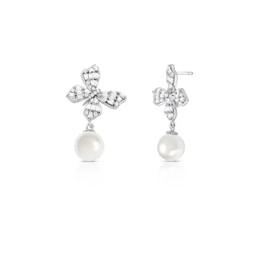 BRINCO PÊNDULO DE FLOR VAZADO COM CRISTAIS