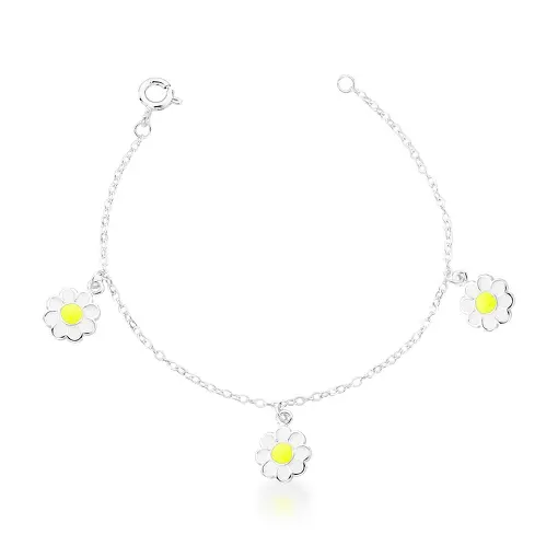 BRINCO KIDS DE FLOR ESMALTADO BRANCO E AMARELO PRATA LISA