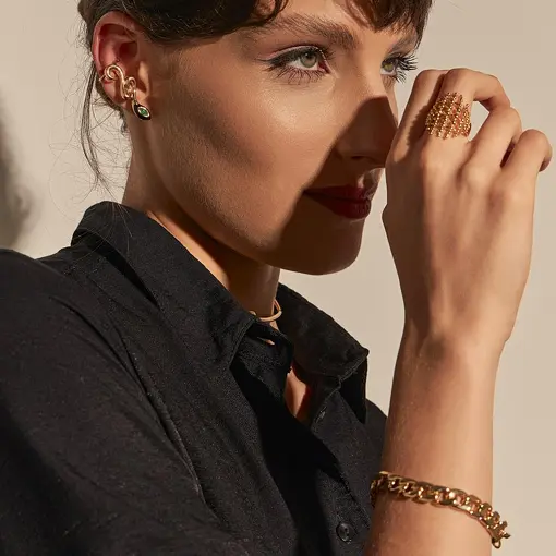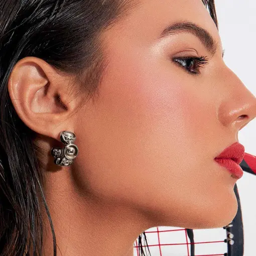 BRINCO PÊNDULO EAR JACKET TEXTURIZADO E COM ESFERA LISA
